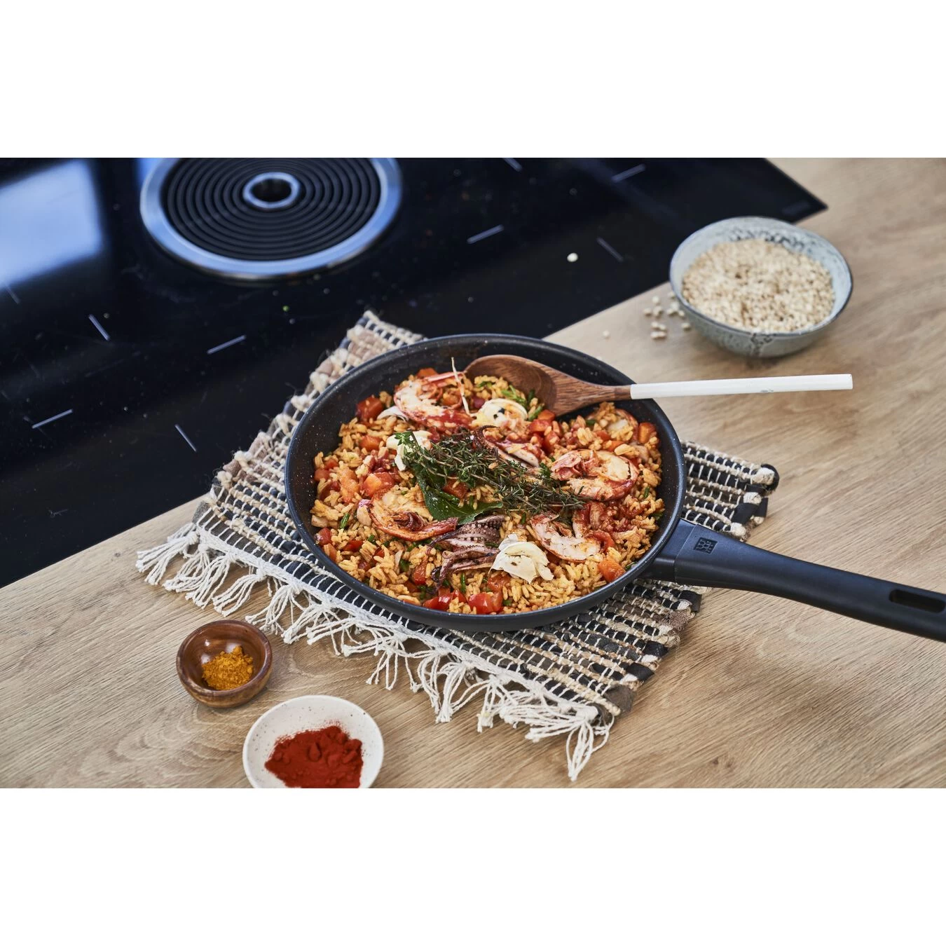 Cette poêle antiadhésive ZWILLING® Marquina Plus de 26 cm est compatible tous feux et induction. Elle peut également s’utiliser au four jusqu’à 180°C. Son revêtement antiadhésif Duraslide® Granite 4 couches est idéal pour cuire avec très peu de matière grasse tous les aliments comme la viande, le poisson, les œufs et les légumes.